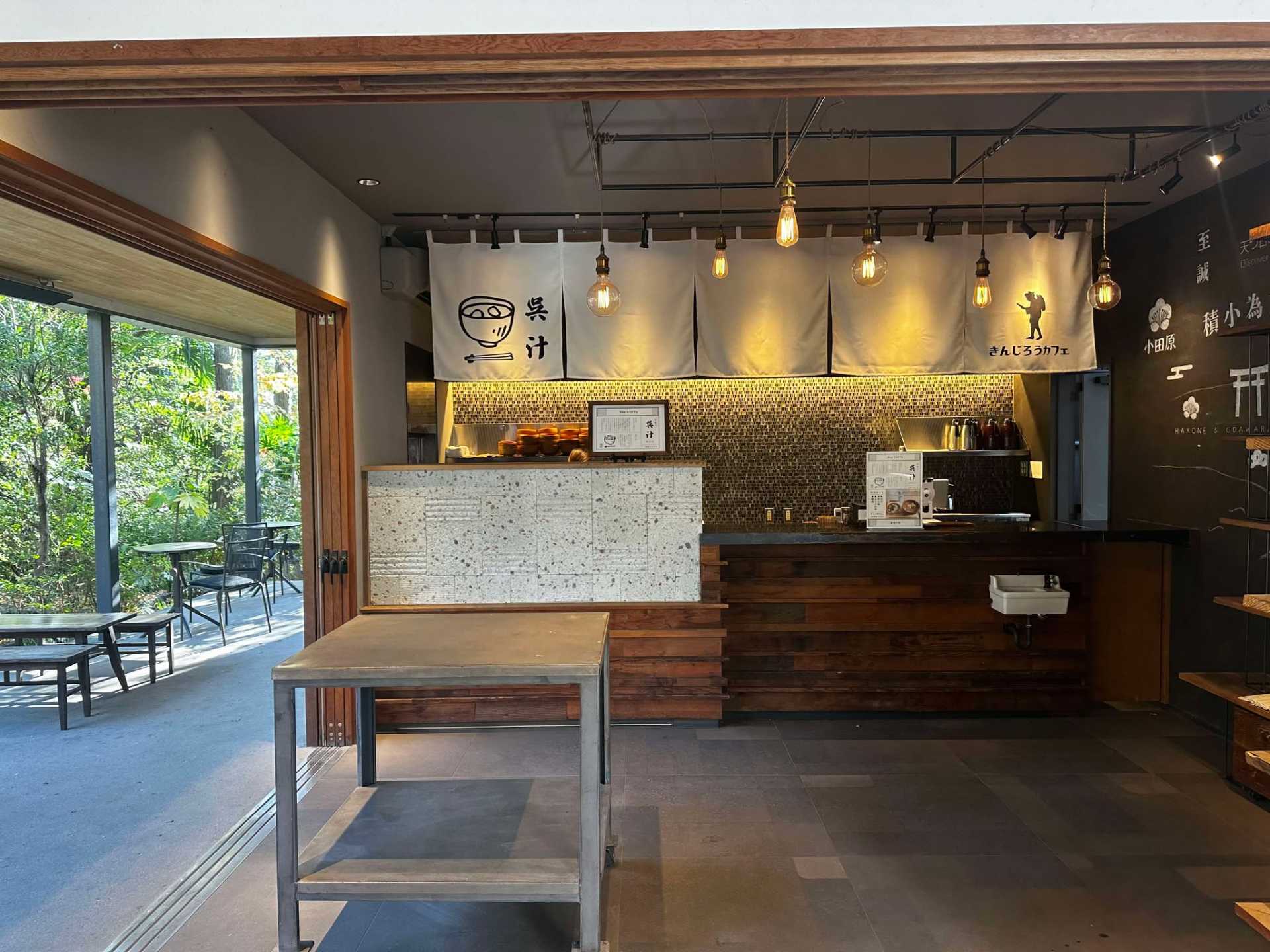 ひろば内には「きんじろうカフェ」と「Café小田原柑橘倶楽部」の、ふたつのカフェが佇み