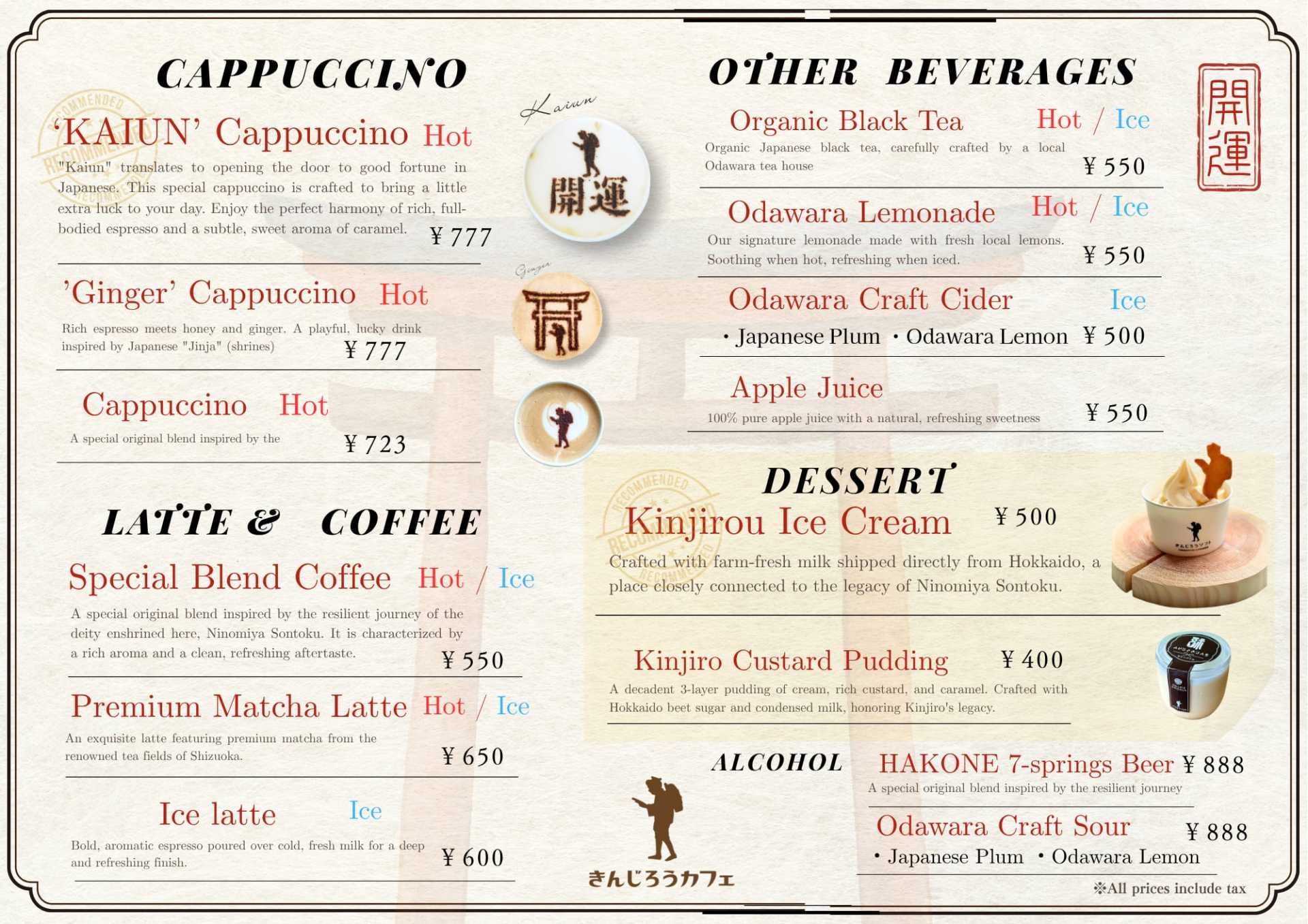 本格イタリアンコーヒーをはじめ、江戸時代に金治郎が食べていた食事「呉汁」などがお楽しみいただけます。ステーショナリーやお菓子などの報徳オリジナルグッズや地域の逸品も販売しております。