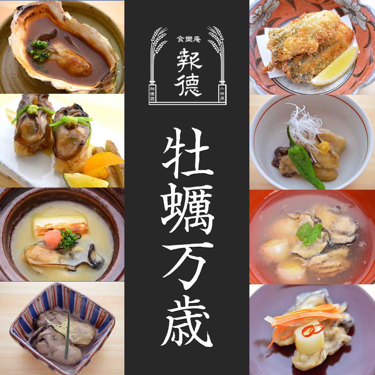 吹寄八寸 / 牡蠣土手鍋 / 牡蠣フライ / 牡蠣土釜ごはん 香の物 牡蠣土瓶仕立て / 甘味